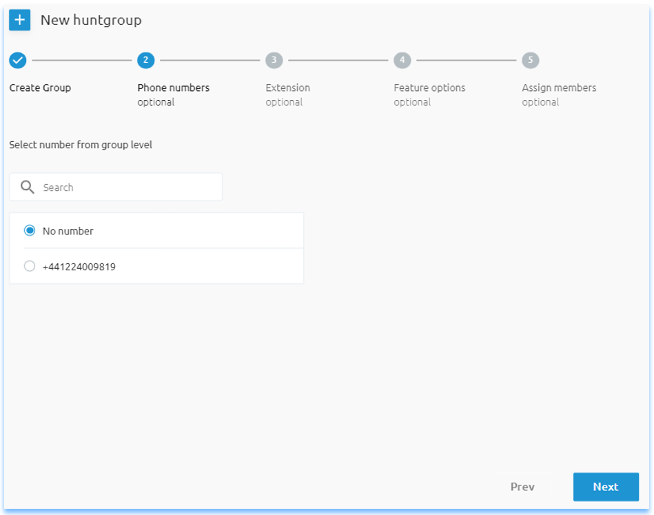 Select a phone number (DDI) if required for external inbound calling to the huntgroup. If no numbers are available you can order new numbers from the Connect it portal.