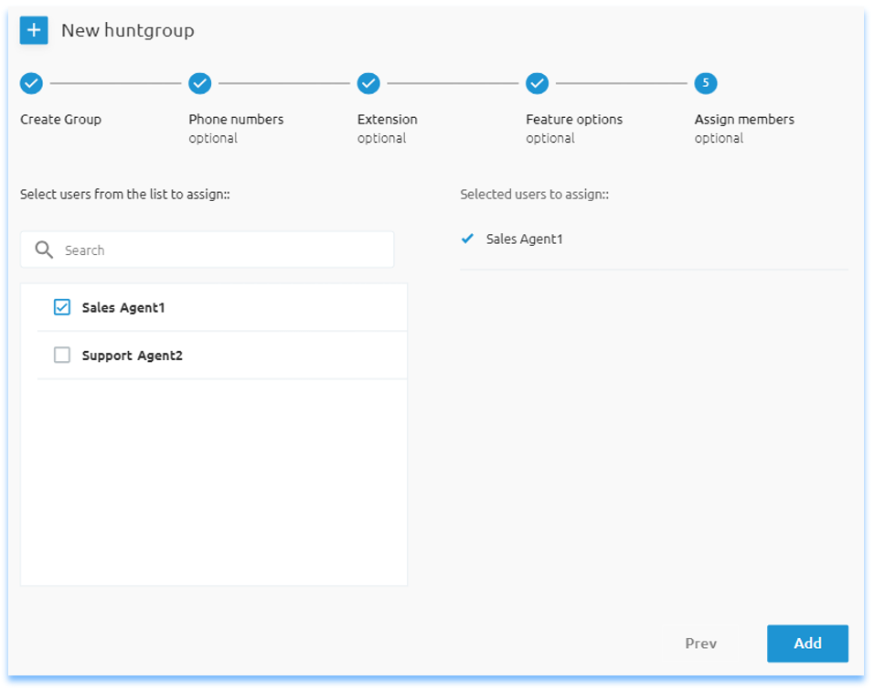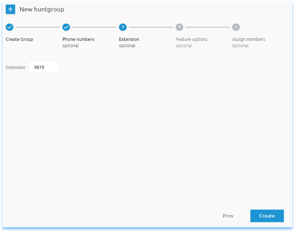 Enter a Hunt Group name. Where other virtual services are in use such as Auto Attendants & Call Centers, it is recommended to identify the service within the Name, eg HG for Hunt Group. This helps where more complicated call flows are built.